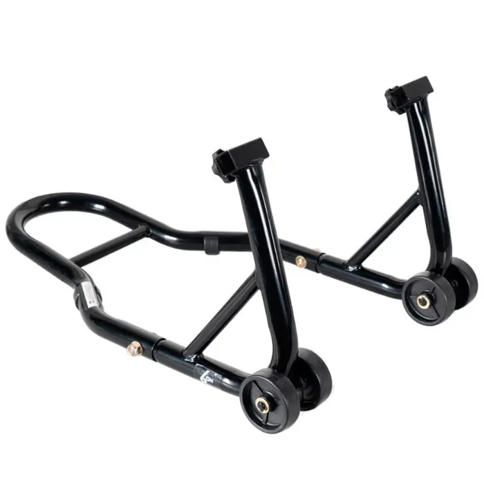 Fabricado en acero resistente, garantiza máxima durabilidad y un apoyo firme en cada uso. Además, incorpora ruedas que simplifican la colocación del caballete y mejoran la maniobrabilidad en el taller o garaje.