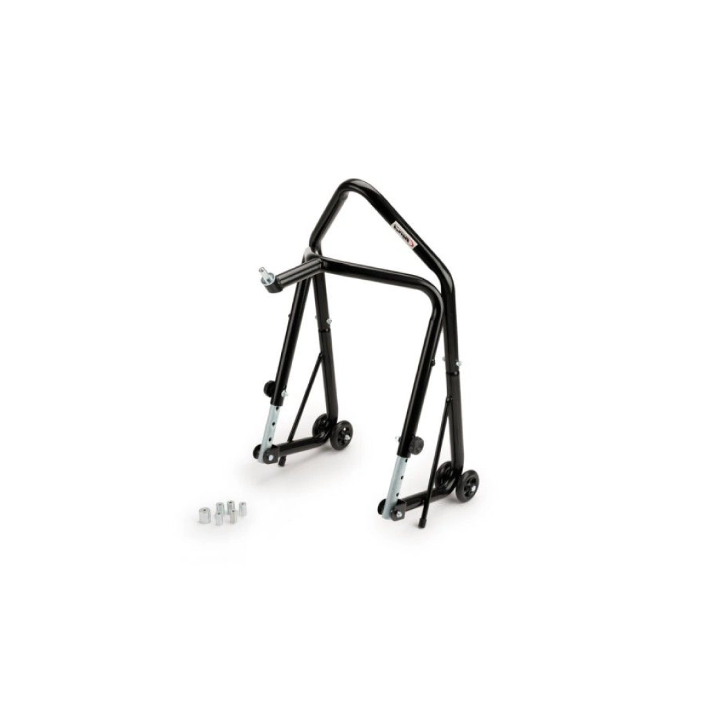 El caballete tija Puig está pensado para estacionar la moto cómodamente y poder realizar labores de mantenimiento con seguridad. Disponible en color negro, se trata de un caballete universal y fácilmente plegable, lo que facilita su almacenamiento mientras no se está utilizando. Se suministra con soportes para ejes de 13 mm, 15 mm, 16,5 mm, 17 mm y 18 mm.