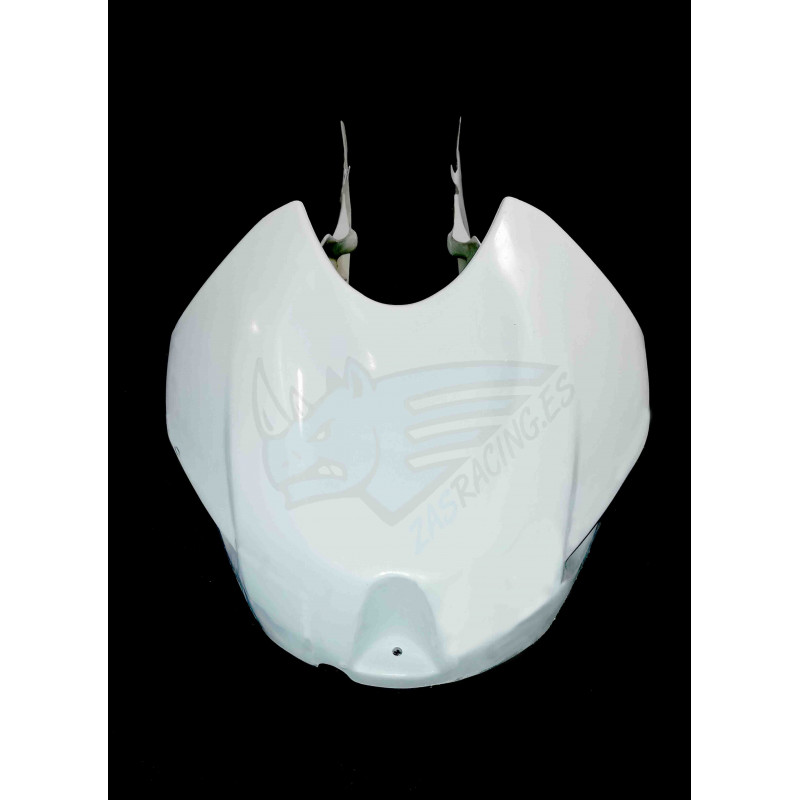 Cubre depósito fabricado en fibra de vidrio y resina de poliéster para depósito original con refuerzo de carbono/kevlar en los puntos de montaje y acabado gelcoat blanco.