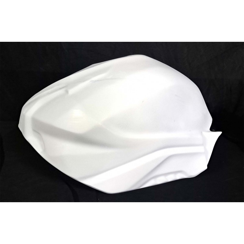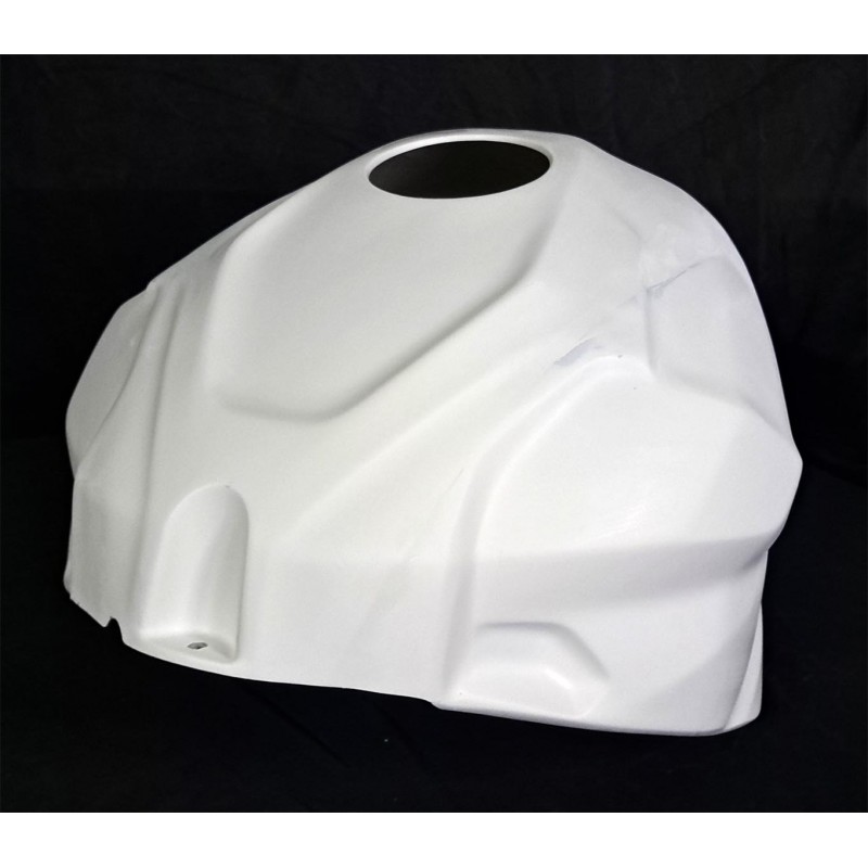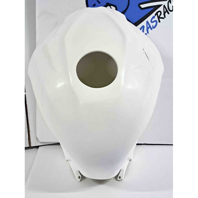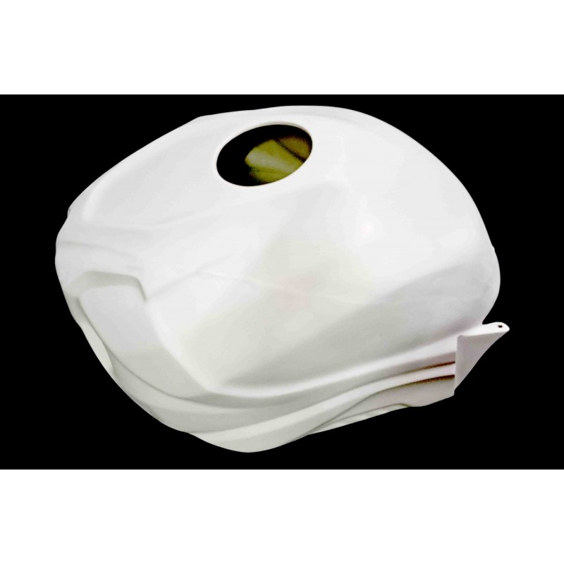 Cubre depósito fabricado en fibra de vidrio y resina de poliéster para depósito original con refuerzo de carbono/kevlar en los puntos de montaje y acabado gelcoat blanco.