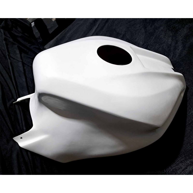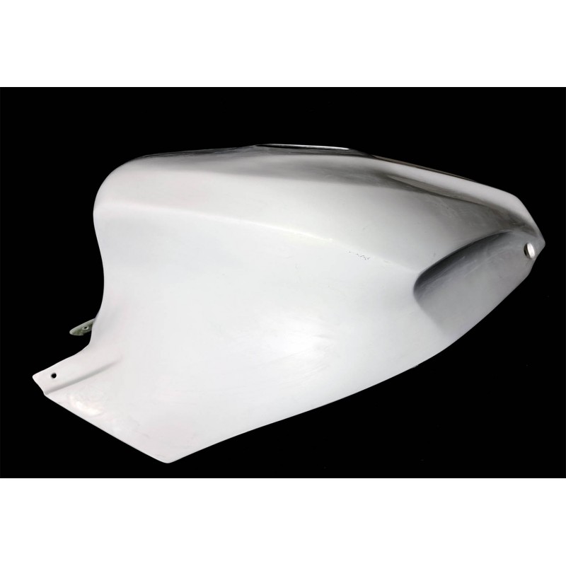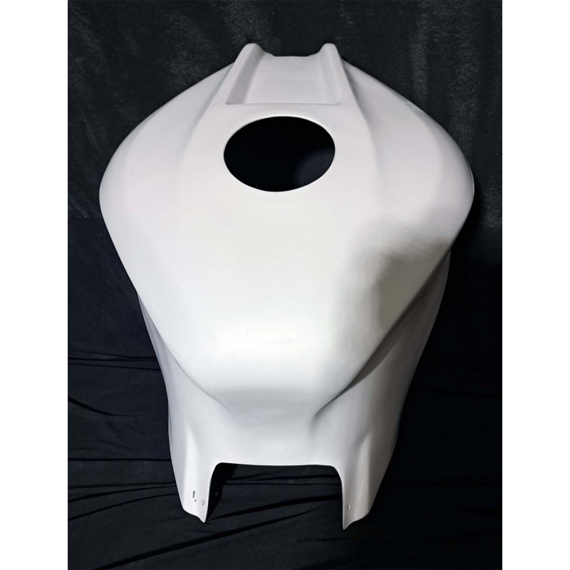 Cubre depósito fabricado en fibra de vidrio y resina de poliéster para depósito original con refuerzo de carbono/kevlar en los puntos de montaje y acabado gelcoat blanco.