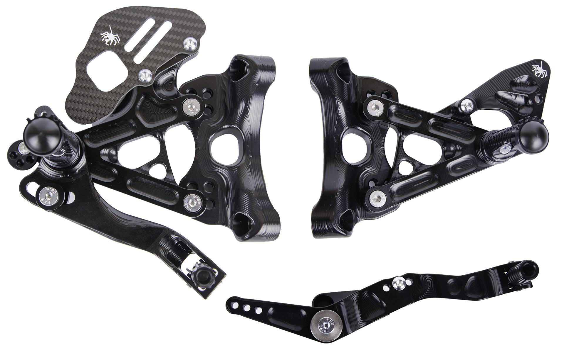 Estriberas SPIDER BMW S1000RR 2019-2025. Ajustables, con cambio normal o invertido. Uso exclusivo en pista.