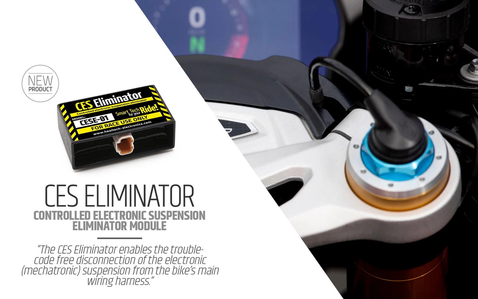 Reemplazar los componentes de suspensión electrónica con el HealTech CESE emulador suspensión permite transformar tu moto en una verdadera máquina de circuito, con una suspensión de alto nivel completamente ajustable.