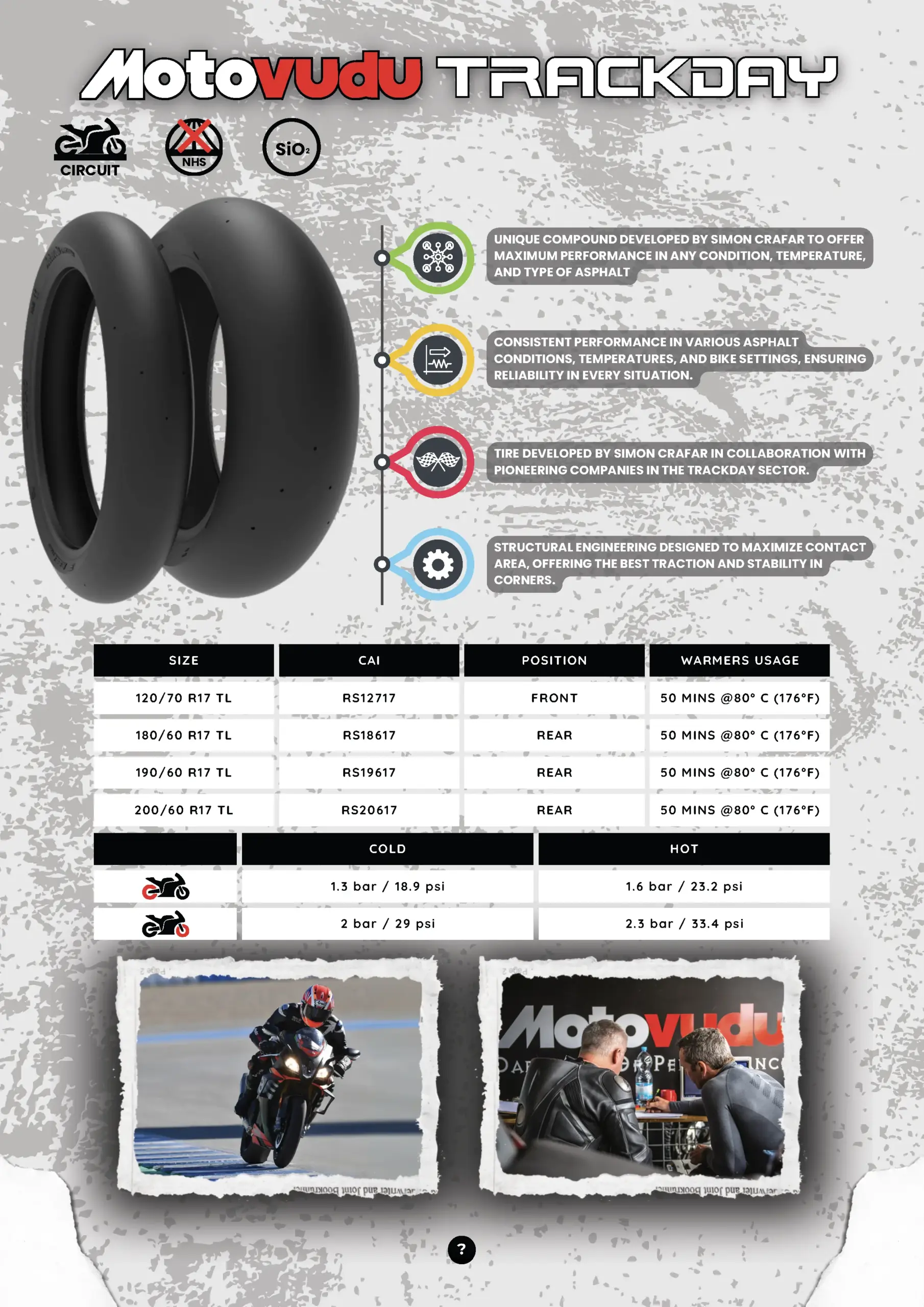 Estos neumáticos han sido diseñados y desarrollados por Simon Crafar, ex-piloto de motociclismo y actual jefe del Panel de Comisarios de la FIM en MotoGP, quien ha volcado toda su experiencia para crear un neumático de altas prestaciones, pensado para trackdays y conducción deportiva.